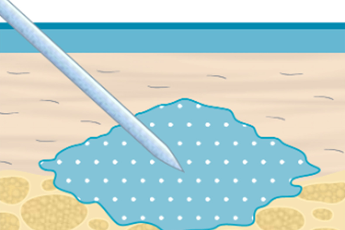 После обезболивания Врач косметолог вводить препарат в веерной технике введения, специализированной канюлей, канюля помогает равномерно распределить препарат Radiesse в мягких тканей лица, для более эффективной подтяжки и стимуляции коллагеновых и эластиновых волокон.